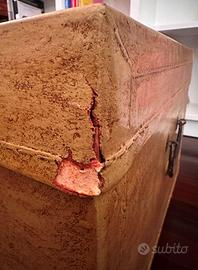 Baule cinese in legno di pergamena, con chiusura in ottone. Ottime condizioni generali, si segnala difetto allo spigolo anteriore destro del coperchio, come da foto. Dimensioni: cm 74x49x34 h. Ritiro a mano a Bari previo appuntamento, prezzo non trattabile.