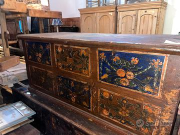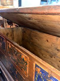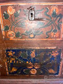 Baule d’epoca dipinto a mano. Dimensioni: 1.44x0.59 h0.60