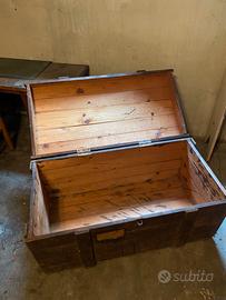 Baule d’epoca interamente in legno, con coperchio bombato.