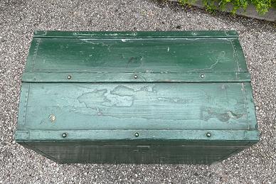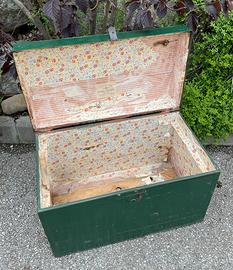 Baule da viaggio in legno, fine 800/ primi 900. Dimensioni: L 81 x P 46,5 x H 57,5 cm circa. Condizioni come foto.