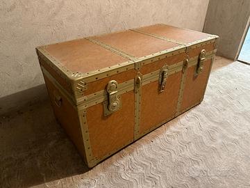 Vendo baule in pelle ocra/senape con ferramenta in ottone. • Può essere utilizzato in vari ambienti della casa come complemento d’arredo Larghezza 100; altezza interna40; altezza totale 50; profondità 52 Prezzo Trattabile