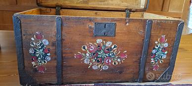 vendo antico baule dipinto con motivi floreali carnici misure: lunghezza cm 80 altezza cm 47 larghezza cm 43