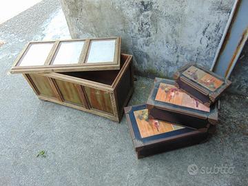 Regalo anche baule in legno ricoperto di etichette ed adesivi vari (lo usava mio figlio per alcuni giocattoli), non visibile nelle foto.