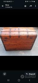 Baule - Forziere primi 900, restaurato con metodo conservativo e verniciato a tampone con gomma lacca; la ferramenteria e tutte le parti in ferro sono originali dell'epoca, anche l'interno è stato restaurato e verniciato per avere uno spazio comodo. Misure : lunghezza cm 90 - altezza cm 70 - profondità cm 47