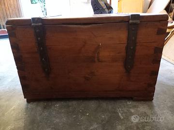 Baule forziere per contenere oggeti di valore. D'epoca, restaurato raro. Con chiave. Ritiro a mano. Alt. cm 58,5, larg. 90, prof, 53