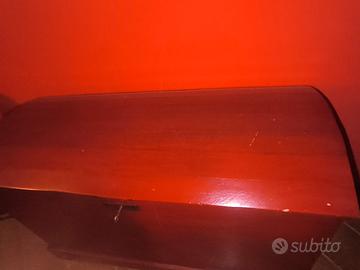 baule legno contenitivo, colore rosso, molto robusto e ampio spazio contenitivo. perfetto solo qualche riga strisciata sopra, ma con un po' di colore rosso scompare.