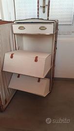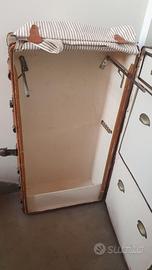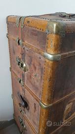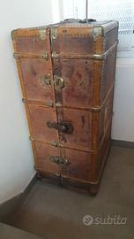 Vecchio baule guardaroba da viaggio, bellissimo oggetto vintage rivestito con tessuto internamente. Molto capiente.