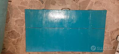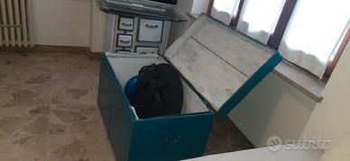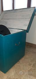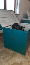 baule in legno, riverniciato blu. Dimensioni: H 61 cm L 100 cm P 55 cm