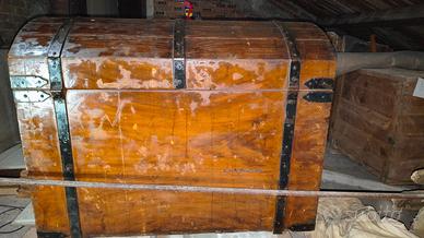 Vendo baule del primo Novecento. Ritrovato in soffitta, era dei nonni. Usato per ben 17 traslochi, ha segni di usura, evidenti anche nelle foto, ma molto robusto e delle seguenti dimensioni: in cm, H 78 - L 105 - P 78. Per metterlo in vendita è stato ripulito, rinvigorito con olio paglierino (riscontrabile anche in una foto) e nuovamente ripulito/rifinito con panno di lana; ovviamente un restauratore migliorerà e ripristinerà ancor meglio il tutto. Vendo a € 80 trattabili. Ottimo pezzo per arredo interno a case e/o negozi-attività che possano sfruttarne la versatilità. Comprensibilmente non spedisco.