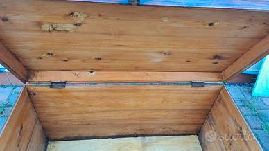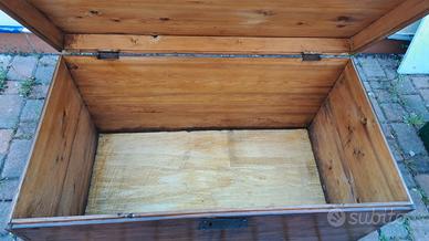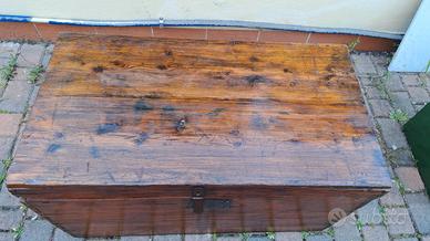 baule cassapanca fine 800 in abete misura 100x55 altezza 60 si presenta in buonissime condizioni originali....M&P Antichità siamo un negozio specializzato in antiquariato vintage e shabby vendita al dettaglio e all ingrosso scarichi settimanali oltre 500 articoli in negozio, abbiamo una vasta scelta di como comodini tolette armadi letti vetrine vetrinette credenze servanti angoliere librerie tavoli tavolinetti sedie poltrone poltroncine divani lampade lampadari tappeti scrivanie scrittoi secretere ribaltine consolle quadri cornici specchi cassapanche bauli oggettistica varia idee regalo e molto altro ci troviamo a Roma zona Castelverde via Massa San giuliano 26b POSSIBILITÀ DI CONSEGNA E SPEDIZIONE IN TUTTA ITALIA PER INFO LUCA