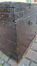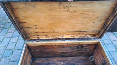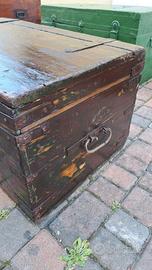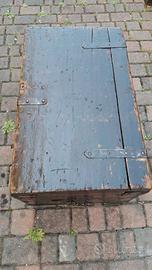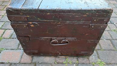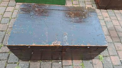 Baule in legno con angolari staffe cerniere e serratura originali in ferro. il baule presenta la sua affascinante patina originale ed è in ottime condizioni misura 85x50 altezza 43...M&P Antichità siamo un negozio specializzato in antiquariato vintage e shabby vendita al dettaglio e all ingrosso scarichi settimanali oltre 500 articoli in negozio, abbiamo una vasta scelta di como comodini tolette armadi letti vetrine vetrinette credenze servanti angoliere librerie tavoli tavolinetti sedie poltrone poltroncine divani lampade lampadari tappeti scrivanie scrittoi secretere ribaltine consolle quadri cornici specchi cassapanche bauli oggettistica varia idee regalo e molto altro ci troviamo a Roma zona Castelverde via Massa San giuliano 26b POSSIBILITÀ DI CONSEGNA E SPEDIZIONE IN TUTTA ITALIA PER INFO LUCA