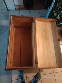 baule in legno vintage con coperchio bombato, non restaurato, mancano i piedini dietro, prezzo indicativo, accetto offerte