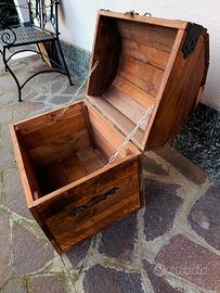 bellissimo baule forziere dei pirati. in legno massello. misure cm 48,5 x 36 x altezza 46 cm. realizzato a mano. accessoriato con cerniere in ottone, maniglie antiche originali liberty, chiusura con lucchetto cuore, angolari di rinforzo in ferro. molto capiente e robusto.