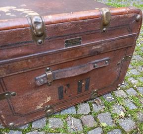 Vecchio baule in legno, con iniziali F.H., leggermente da sistemare in un lato esterno causa umidità, misure 51cmx75cm, atezza 35cm