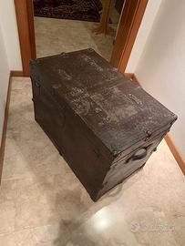 Baule del 900 in legno rivestito in ferro con chiusure integre. Non spedisco, pagamento in contanti, ritiro a cura dell'acquirente