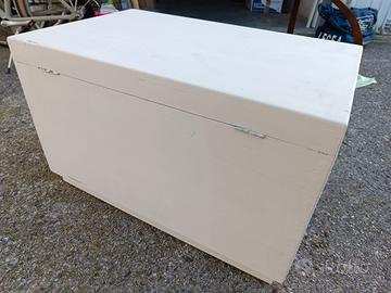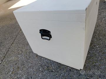 Baule molto solido in legno, (è stato già ristrutturato, levigato e ridipinto) con maniglie originali. Larghezza 79 cm Profondità 50 cm Altezza 50 cm