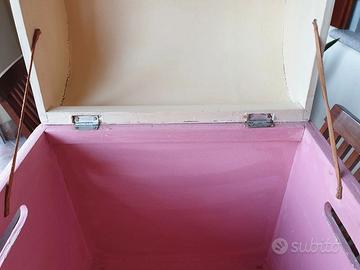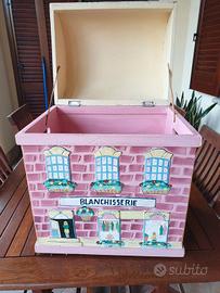 Bauletto in legno dipinto come da foto, ideale per riporre i giochi dei bambini. Misure 43x34, altezza 53 cm