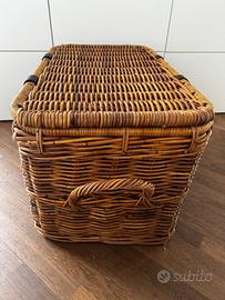 Elegante baule realizzato con intreccio di rattan. Un pezzo unico che aggiunge un tocco rustico e raffinato.