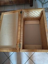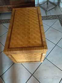 Vendesi baule in vimini, dimensioni 45x80cm h 47cm , dotato di rotelline, utilizzabile anche come tavolino da salotto, prezzo 50 euro