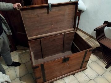 Vendo baule in legno con borchie e serratura in metallo.