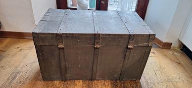 Baule legno e ferro, era del nonno di mia suocera che tornando dl Africa dovrebbe essere negli anni 30 ha portato con sé questo baule con all interno il manifesto alla memoria dei caduti di Dogali, valuto offerte e sono disponibile a mandare altre foto, la consegna a mano sarebbe preferita