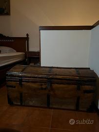 Vendo Baule originale di fine ‘800, autentico e d’epoca, in legno massello con rinforzi e ferramenta in ferro battuto a tratti in pelle.