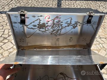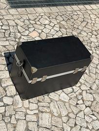 Per inutilizzo, baule con doppio scomparto, in alluminio, rivestita in similpelle in esterno.