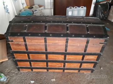 Baule fine ottocento, rivestito internamente, borchie in ferro, ottimo per biancheria o come semplice contenitore.