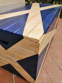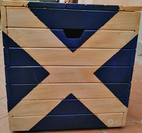 Un tributo al paese più bello del mondo. Unico raro baule in legno dipinto a mano raffigurante la bandiera scozzese. Finitura a gommalacca.