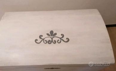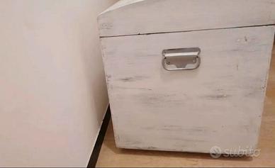 Elegante baule shabby in legno, no truciolato. Ha rotelle invisibili per un trasporto agevole. Molto capiente. Misure: