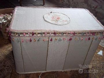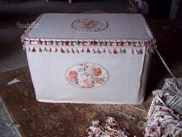 venso baule rivestito in stoffa con rosoni, rifinito con passamanerie e pizzo. per misure contattare visita il sito ipizzidifrancesc artigianato antiquariato arredamento shabby e provenzale complementi di arredo da giardino in cemento
