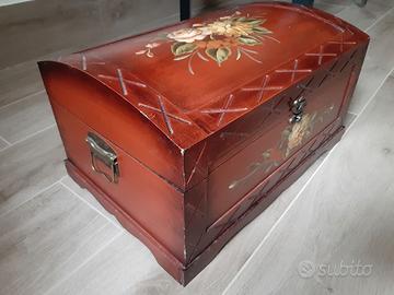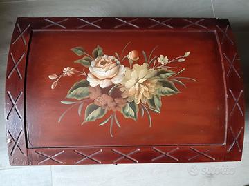 con decorazioni fatte a mano, da arredamento misure 52x35x29cm, interno foderato di tessuto.