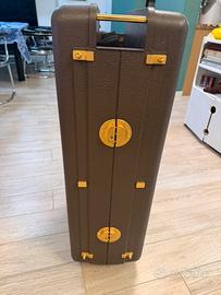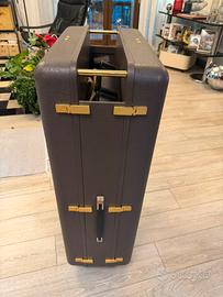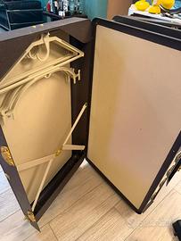 Baule valigia da viaggio completa mai utilizzata ma con una riparazione su un angolo in quanto prototipo in plasica dell’epoca. Oggetto D’arredamento vintage per negozi o in case non per utilizzare per viaggi data la sua struttura.