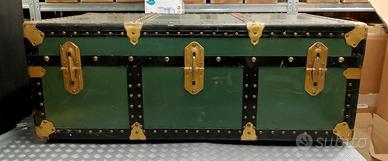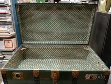 Bellissimo baule vintage colore verde con maniglie in metallo