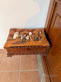 Baule vintage in legno intagliato Don Chisciotte