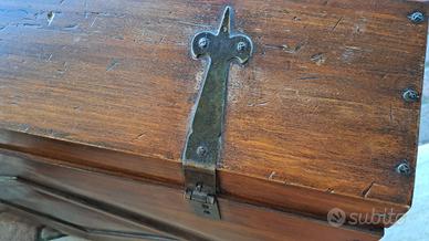 baula vintage in legno massello maniglieria e ferramenta in ferro battuto originali ottime condizioni misura 95x50 altezza 60...M&P Antichità siamo un negozio specializzato in antiquariato vintage e shabby vendita al dettaglio e all ingrosso scarichi settimanali oltre 500 articoli in negozio, abbiamo una vasta scelta di como comodini tolette armadi letti vetrine vetrinette credenze servanti angoliere librerie tavoli tavolinetti sedie poltrone poltroncine divani lampade lampadari tappeti scrivanie scrittoi secretere ribaltine consolle quadri cornici specchi cassapanche bauli oggettistica varia idee regalo e molto altro ci troviamo a Roma zona Castelverde via Massa San giuliano 26b POSSIBILITÀ DI CONSEGNA E SPEDIZIONE IN TUTTA ITALIA PER INFO