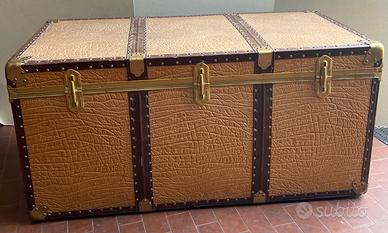 Baule vintage con scomparto rimuovibile e chiave. Misure cm.110x56xh.54. Condizioni: molto buone. Questo articolo vintage non ha difetti, ma può presentare lievi segni del tempo.