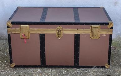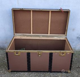 Baule vintage modernariato laminato colore marrone serrature funzionanti con chiave. In ottime condizioni.