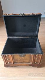 Baule vintage porta oggetti in legno, marchio Coin, larghezza 45, altezza 34, profondità 31 cm. Bellissimo oggetto di design, da poter utilizzare anche come piccolo tavolino o comodino.
