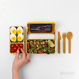 Grazie al separatore interno i cibi restano divisi e freschi, la valvola di sfiato permette un uso sicuro in microonde e il coperchio ermetico evita ogni fuoriuscita.