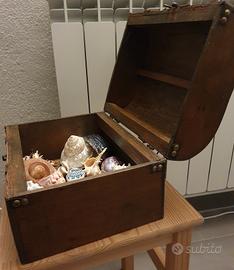 bauletto scrigno cofanetto portagioie nuovo, scatola in legno e cuoio, rustico e anticato, molto bello e resistente, funzionale o come decoro, molteplici usi, dotato di maniglia e serratura. misure 30x20x25