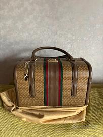 Elegante bauletto vintage firmato Principe, chiaramente ispirato al design classico italiano anni '80/'90. Realizzato in tela monogrammata con l'iconica banda centrale verde e rossa.