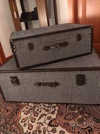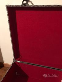 Tre Bellissimi bauli tipo legno foderati in velluto rosso, di colore spinato bianco e nero