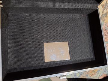 Beauty case a valigetta color argento con interno nero e specchio, misure vedi foto.
