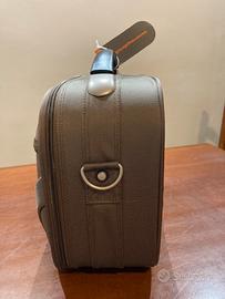Beauty case rigido da viaggio firmato Nazareno Gabrelli, color tortora. Ancora con etichetta
