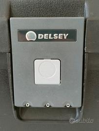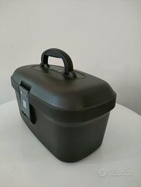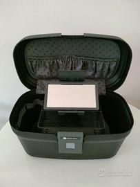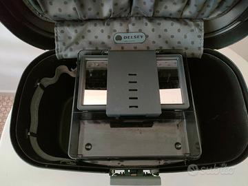 Beauty case rigido del marchio Delsey, nero con chiusura con codice segreto. Interno con varie tasche e divisoria con specchio reclinabile Materiale plastico anti urto Misure esterne Larghezza 38 cm Altezza 25 cm Profondità 22 cm