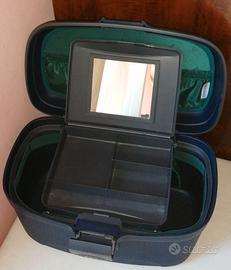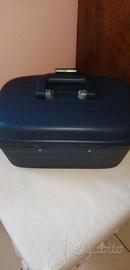 Beauty case rigido, marca Roncato, colore blu scuro, particolari all'interno verdi, porta gioie interno removibile. Chiusura con combinazione perfettamente funzionante (verra fornita al momento dell'acquisto).