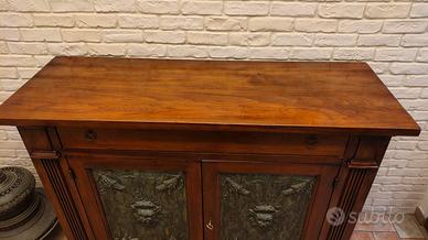 Bel mobile "in vero legno" usato generalmente per stipare piatti e bicchieri . E' un bel pezzo da arredo impreziosito da due pannelli molto particolari . Mobile molto solido ( vedi spessore delle porte ). NON E' il mobiletto in truciolato stile ikea ! Dimensioni : altezza 110, profondita' 52, larghezza 146