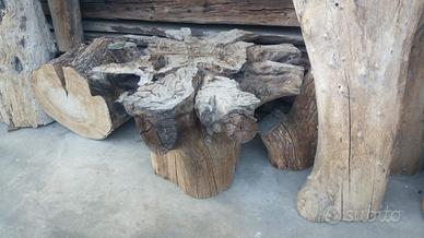 radice di pino (o forse abete), sagomata 15 anni fa.. qualche tarlo.. spianata x tavolino basso, diametro posizione radici 80cm circa, altezza 50 cm