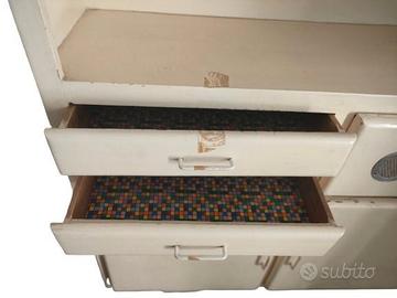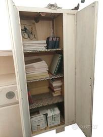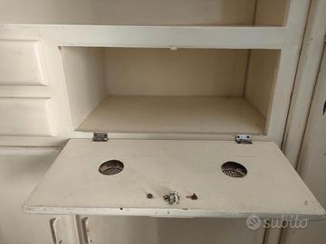 Credenza vintage in buone condizioni come da foto. Tutto originale. Con anta e ripiani a lato. Urge sgomberare. Larghezza 120+80, tot 200 cm